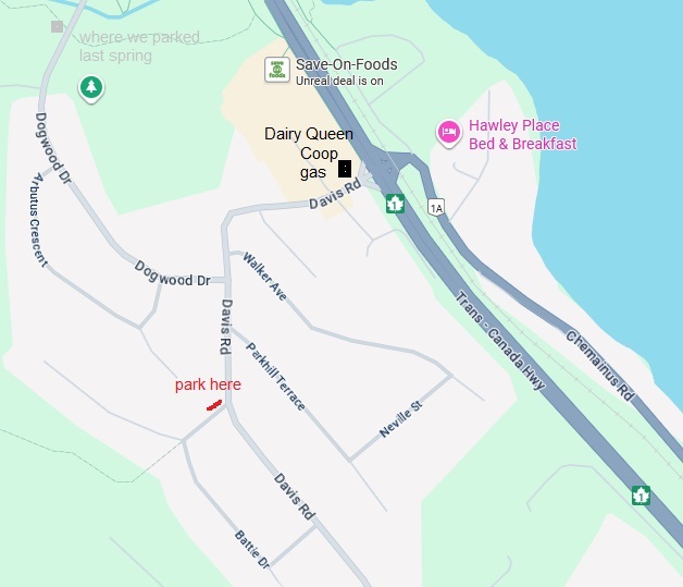 HIKE – Bob Keates will lead a hike to Stocking Lake and Heart Lake, Hike is 9.3 km and 310 m ascent. Poles advised for the steep descent from Heart Lake.If you have bear spray, please bring it. Meet at Portlock Park at 8:40 to set up ride sharing to drive onto the 9:35 ferry. I will go to ArtSpring at 8:25 if anyone needs a ride from Ganges. Turn off the Trans-Canada at Davis Rd N. in Ladysmith, and park in a pull-out at the start of Battie Drive.